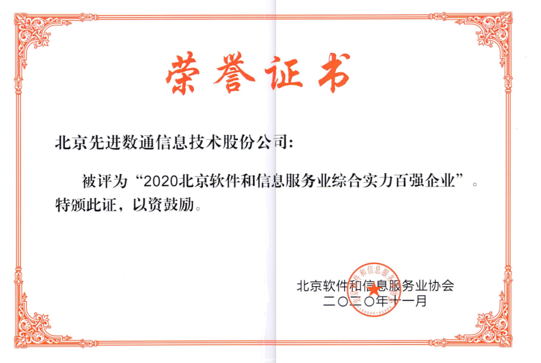 evo真人视讯成功入选“2020北京软件和信息服务业信息综合实力百强企业,并获评2020北京软件企业核心竞争力规模型企业。
